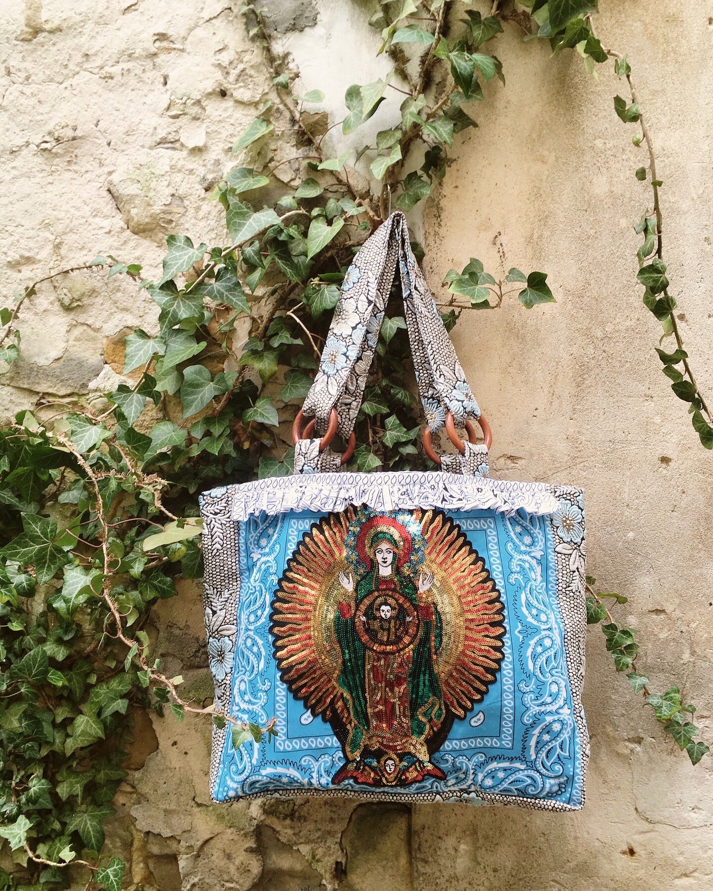 ■ マリア様 フリーダ カーロ スパンコール バンダナ柄トートバッグ フランス製 一点もの!