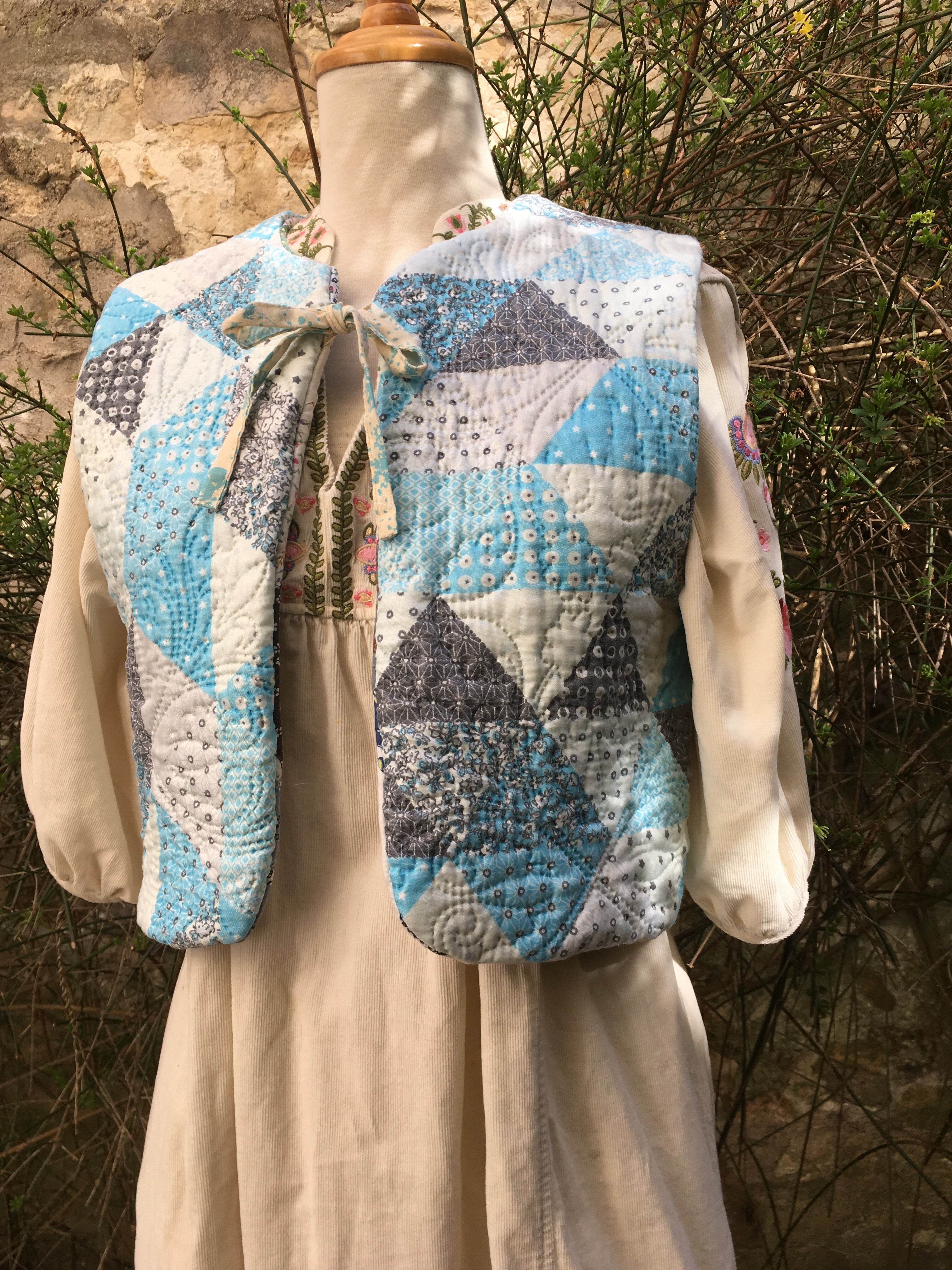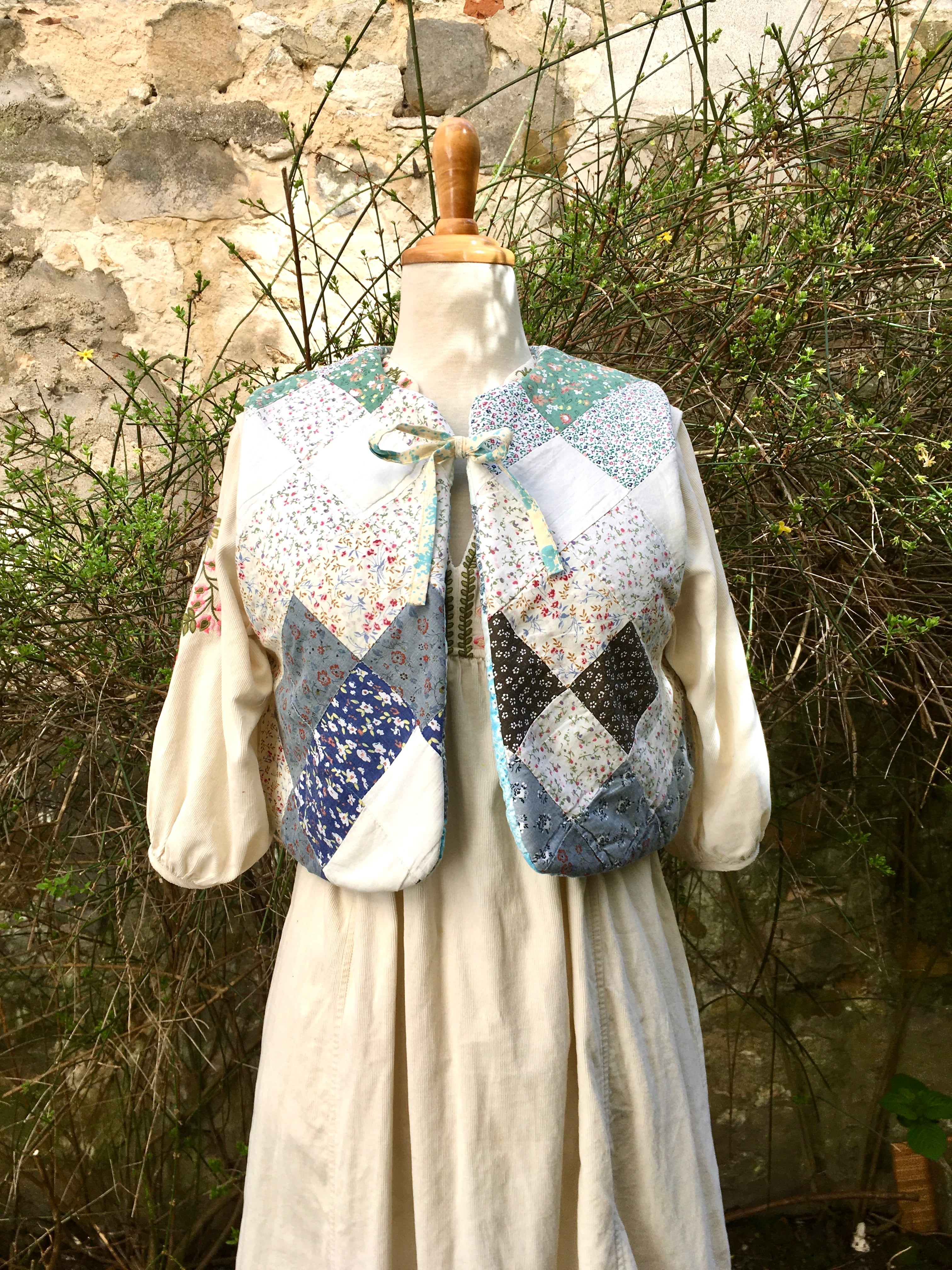 ビンテージパッチワーク upcycling 袖なしベスト リバーシブル フランス製