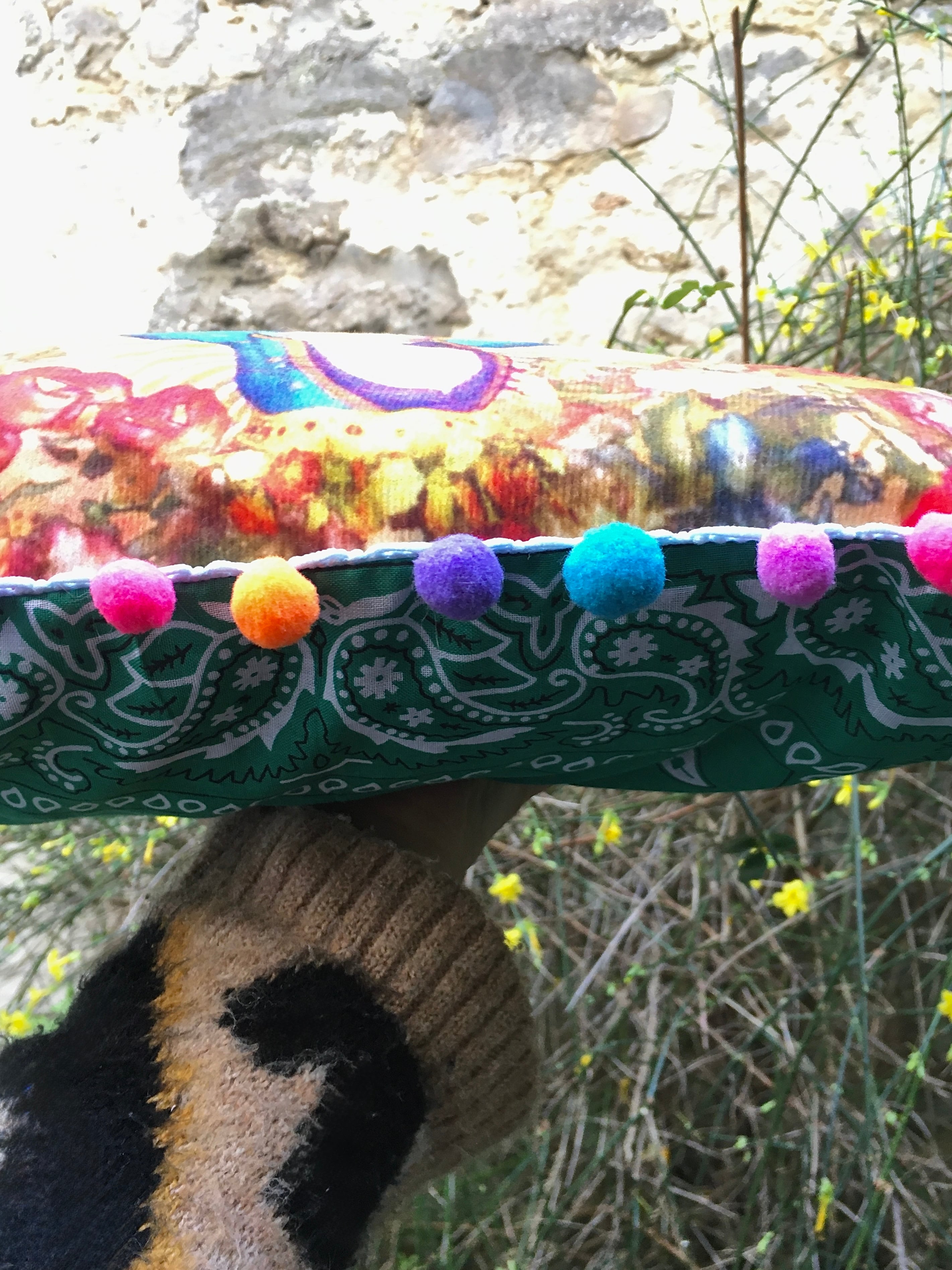## Guadeloupe マリア様 メキシカン バンダナ生地クッションカバー フランス製