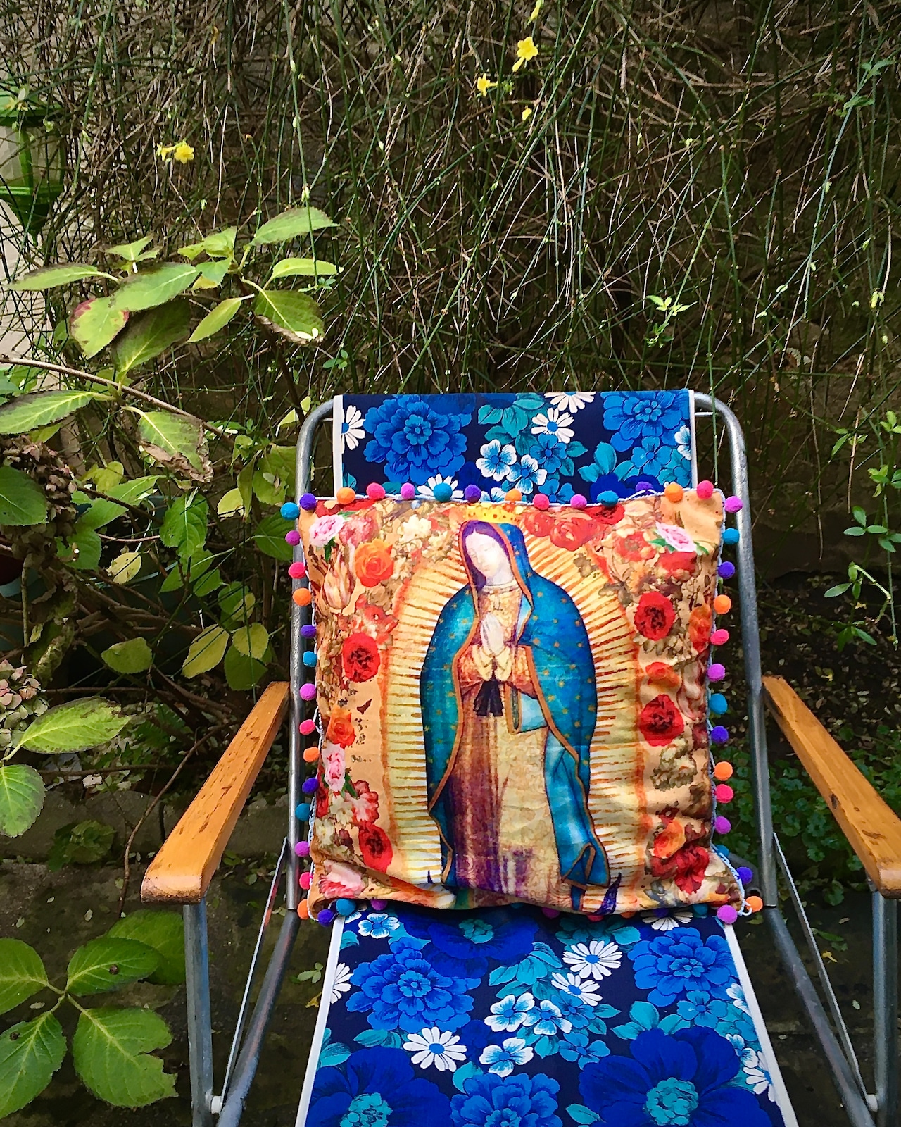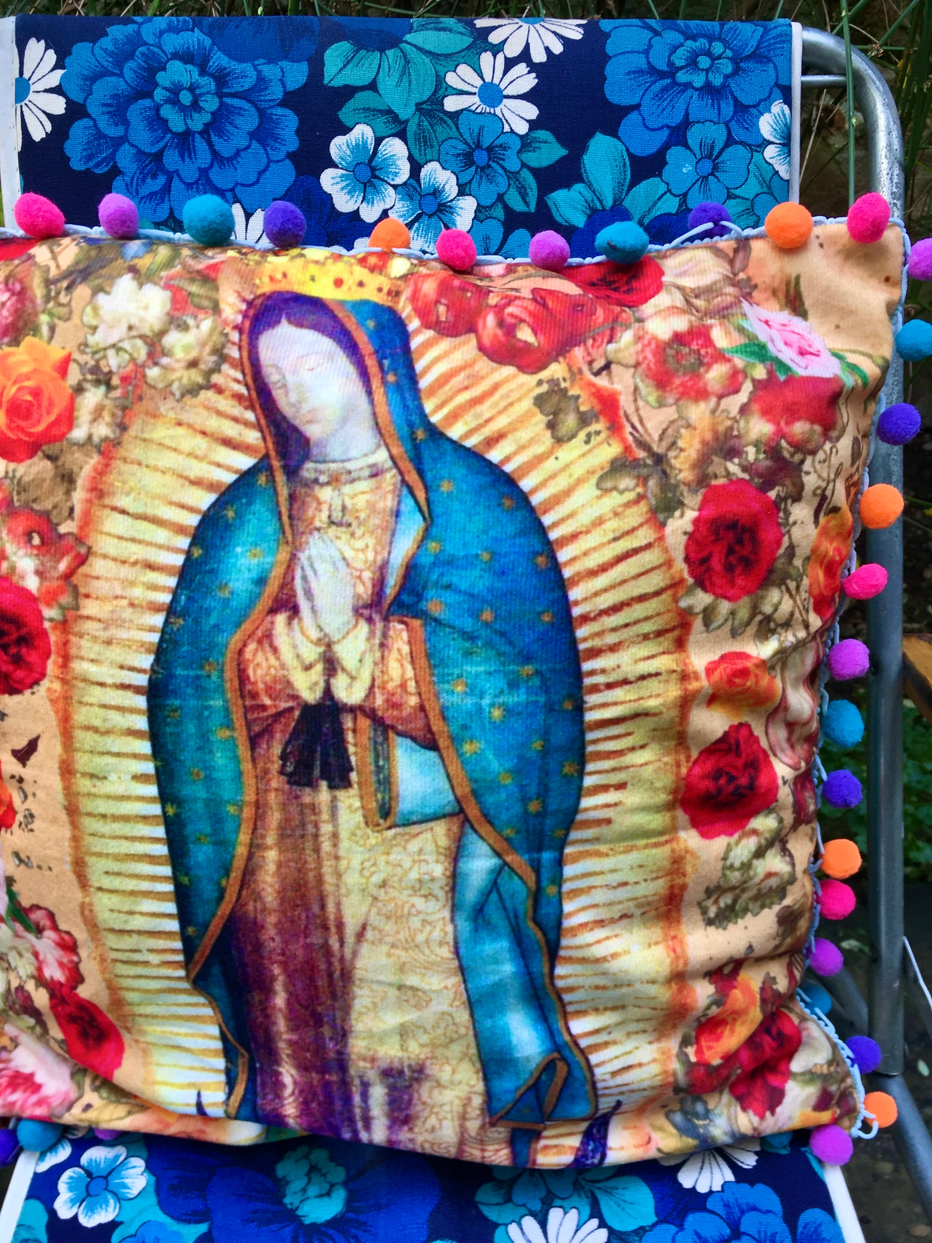 この「Guadeloupe マリア様 メキシカン バンダナ生地クッションカバー」は、カラフルなポンポンが施された独特のデザインが特徴です。メキシカンテイストのマリア様が描かれ、リビングや寝室に鮮やかな彩りを添えるアイテムとなっています。視覚的な魅力で、空間を楽しく、そして心温まる雰囲気を醸し出します!