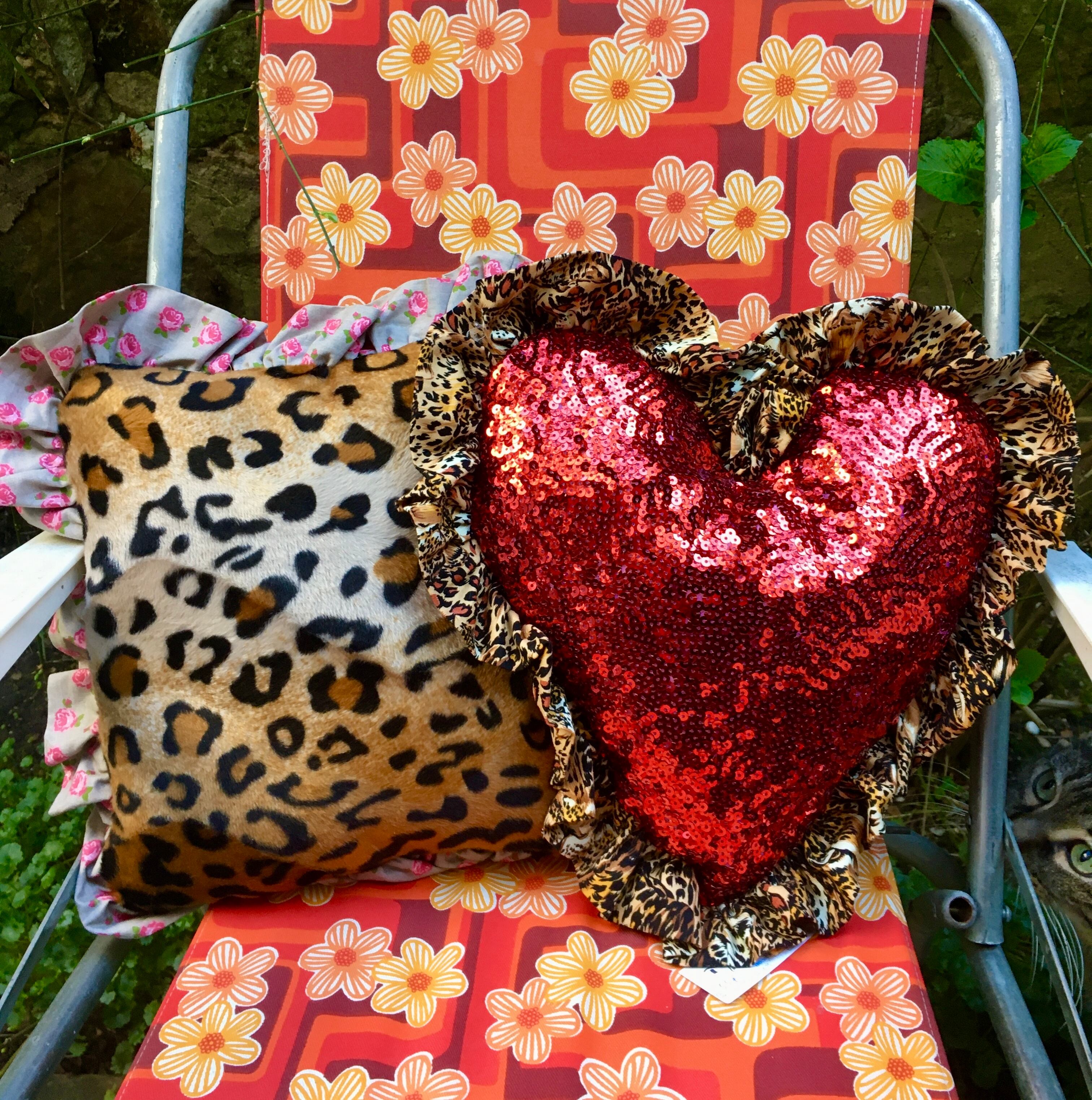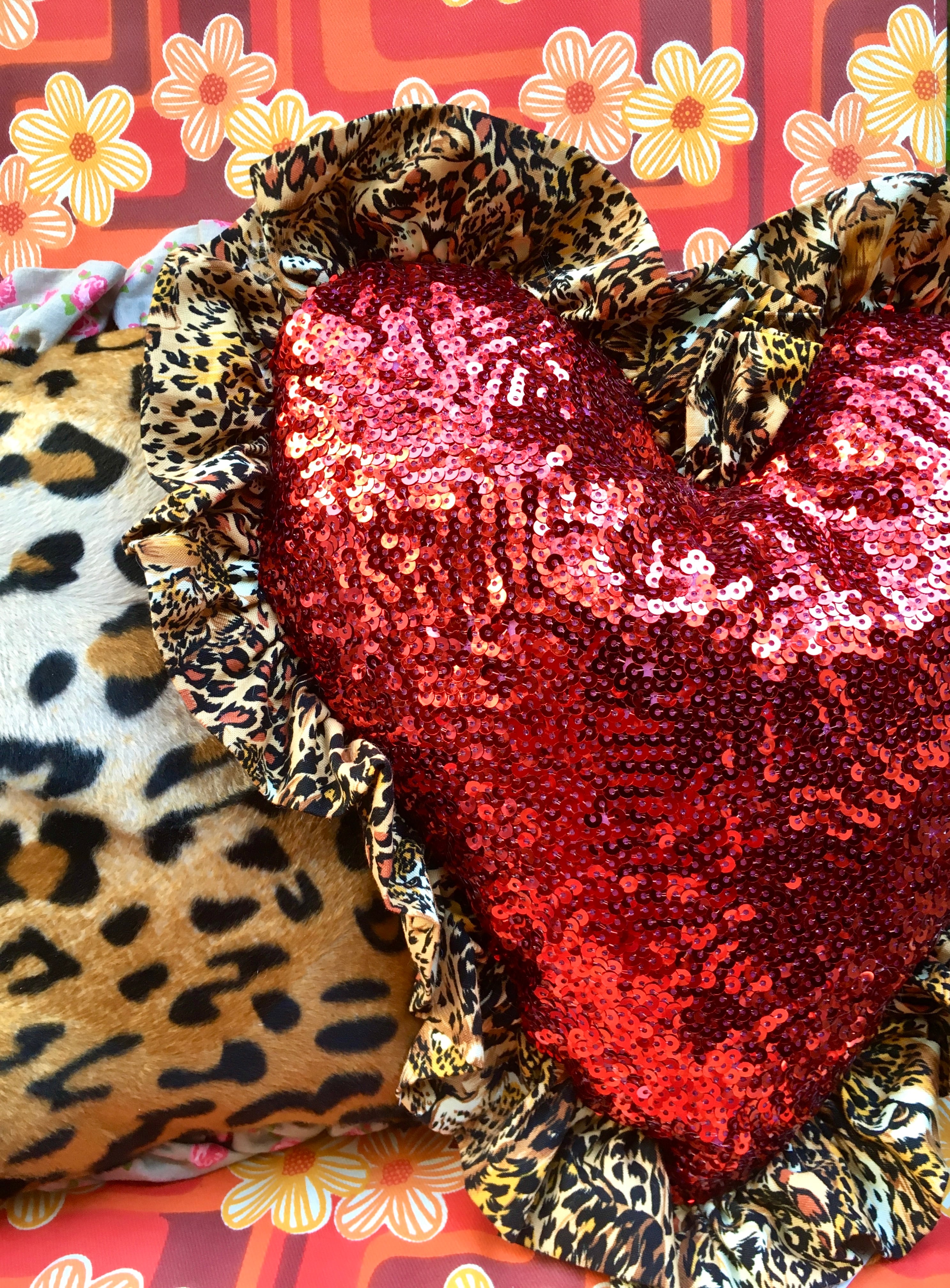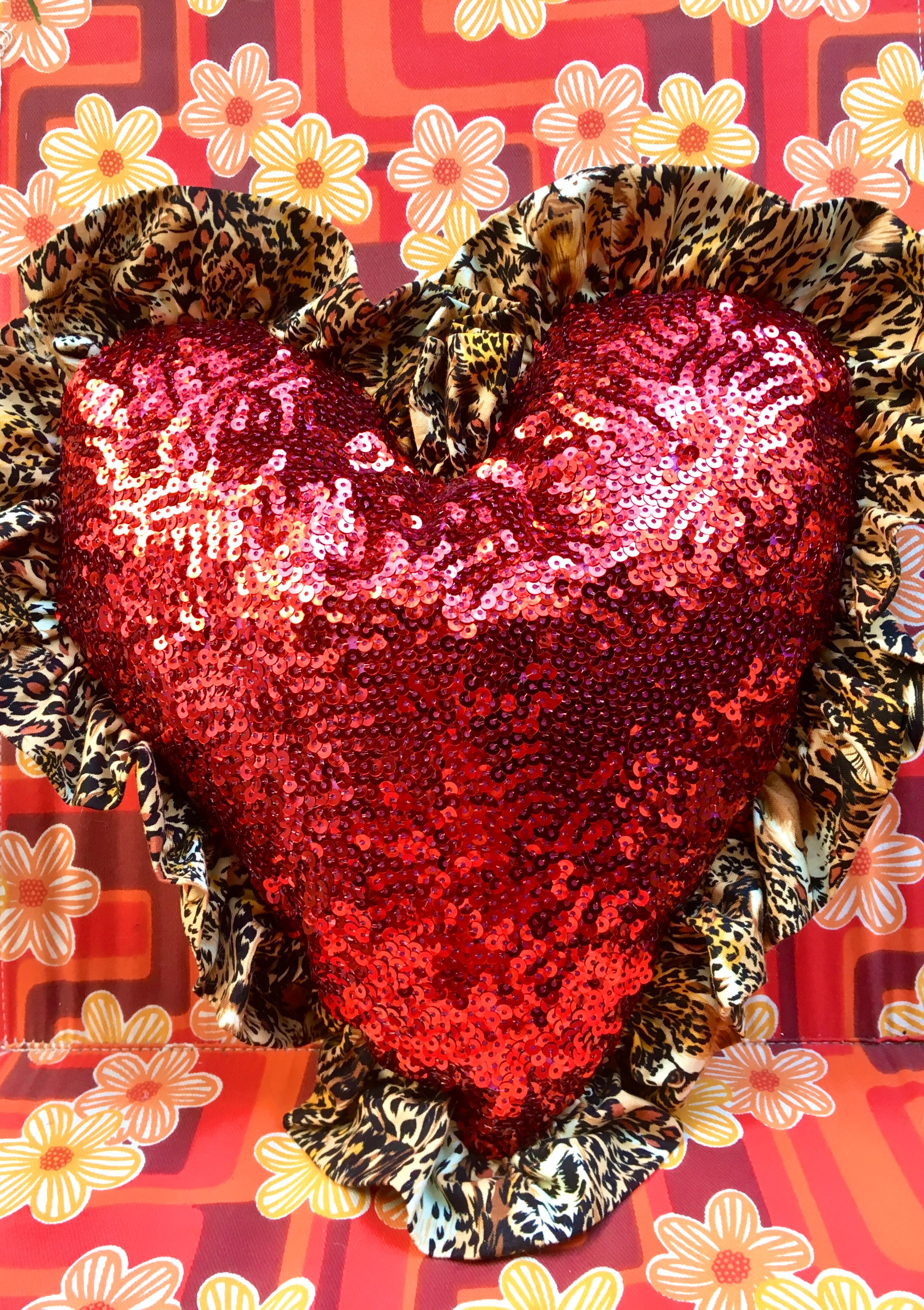 ハート スパンコールモチーフ クッション フランス製 一点もの