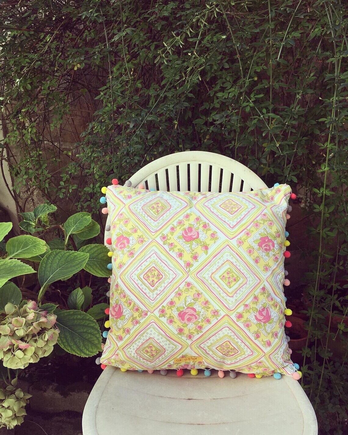 Sainte Marie Guadalupe housse de coussin (PINK+pompon) /マリア様ジャガード生地 pink ポンポン クッションカバー | Libera me online shop