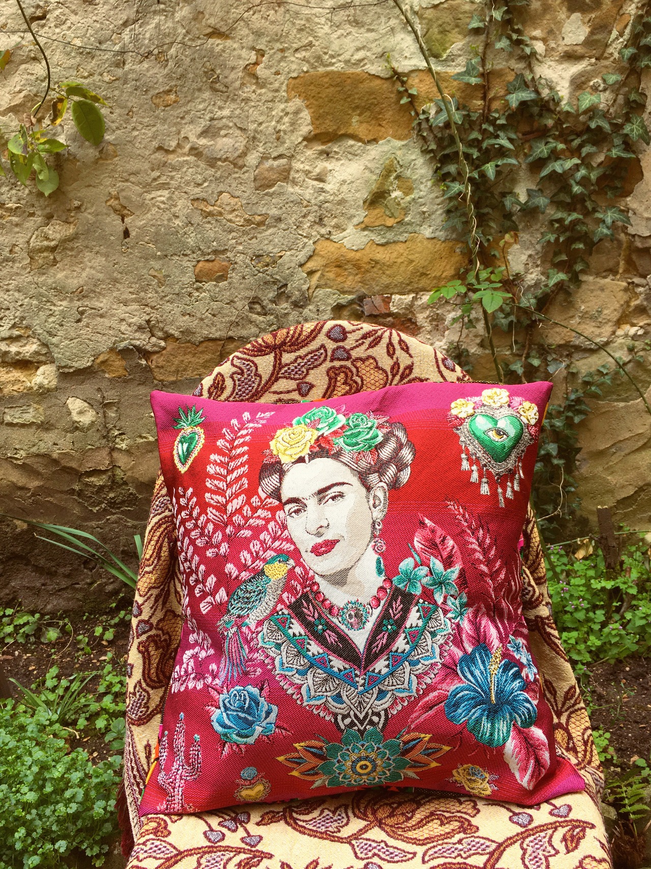 Frida rouge housse de coussin / Frida ジャガード生地 クッションカバー