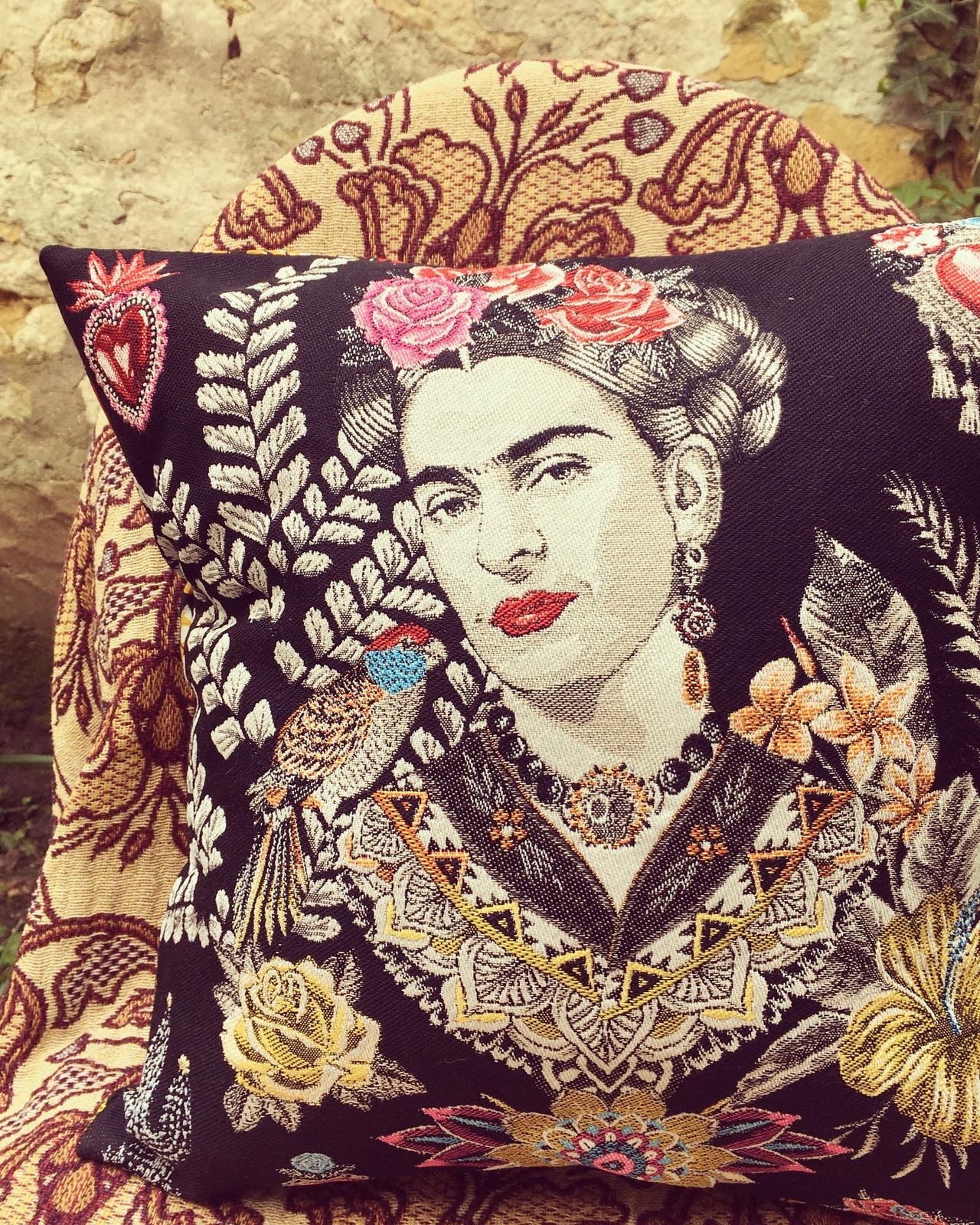 Frida black housse de coussin / Frida ジャガード生地 クッションカバー