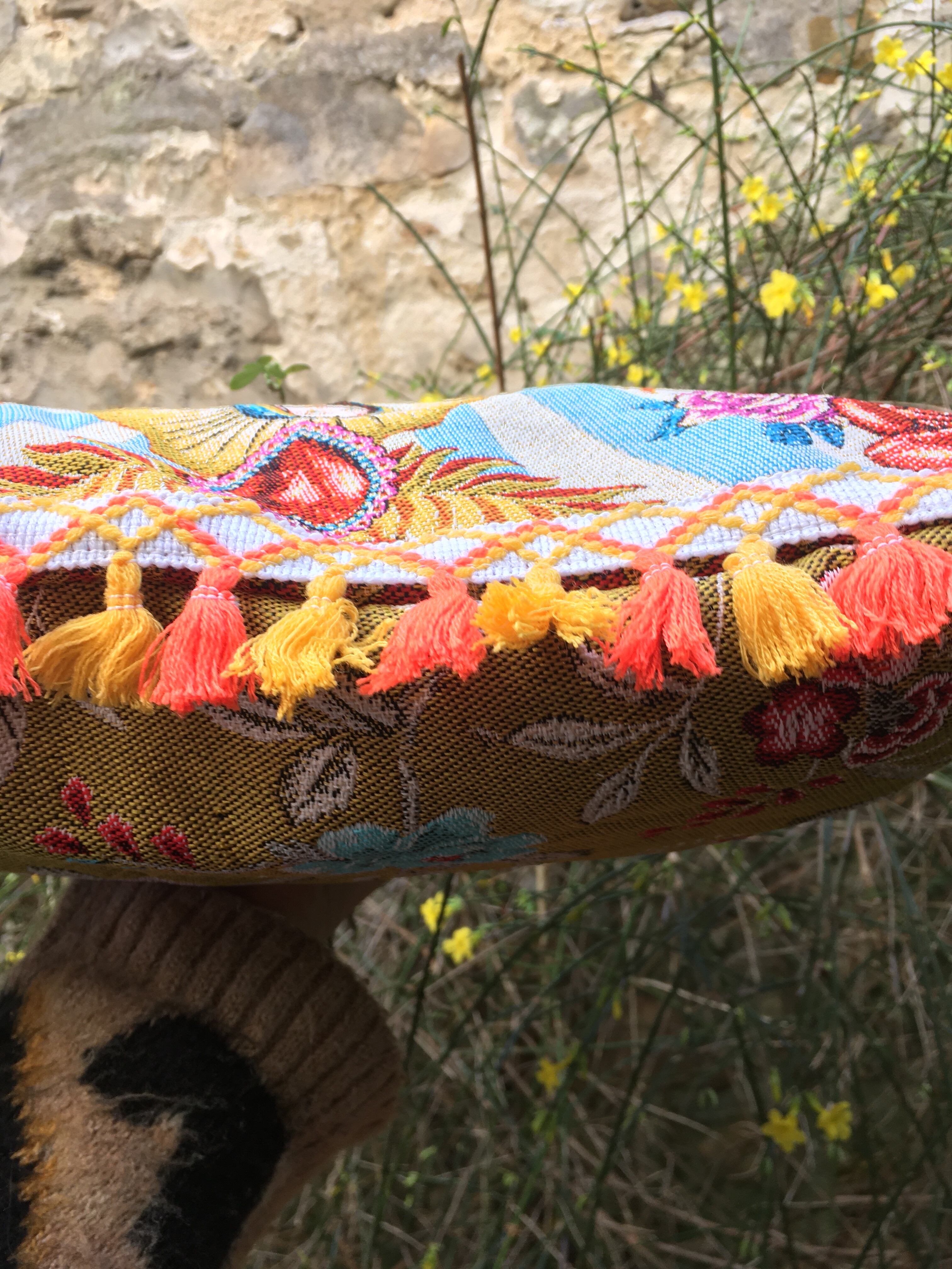 この「Guadeloupe マリア様ジャガード生地 フリンジ クッションカバー」は、華やかで上品なジャガード生地を使用しています。マリア様の美しい柄が施されたこのクッションカバーは、あなたのインテリアにエレガンスをプラスし、どんな空間でも際立った魅力を引き出します!