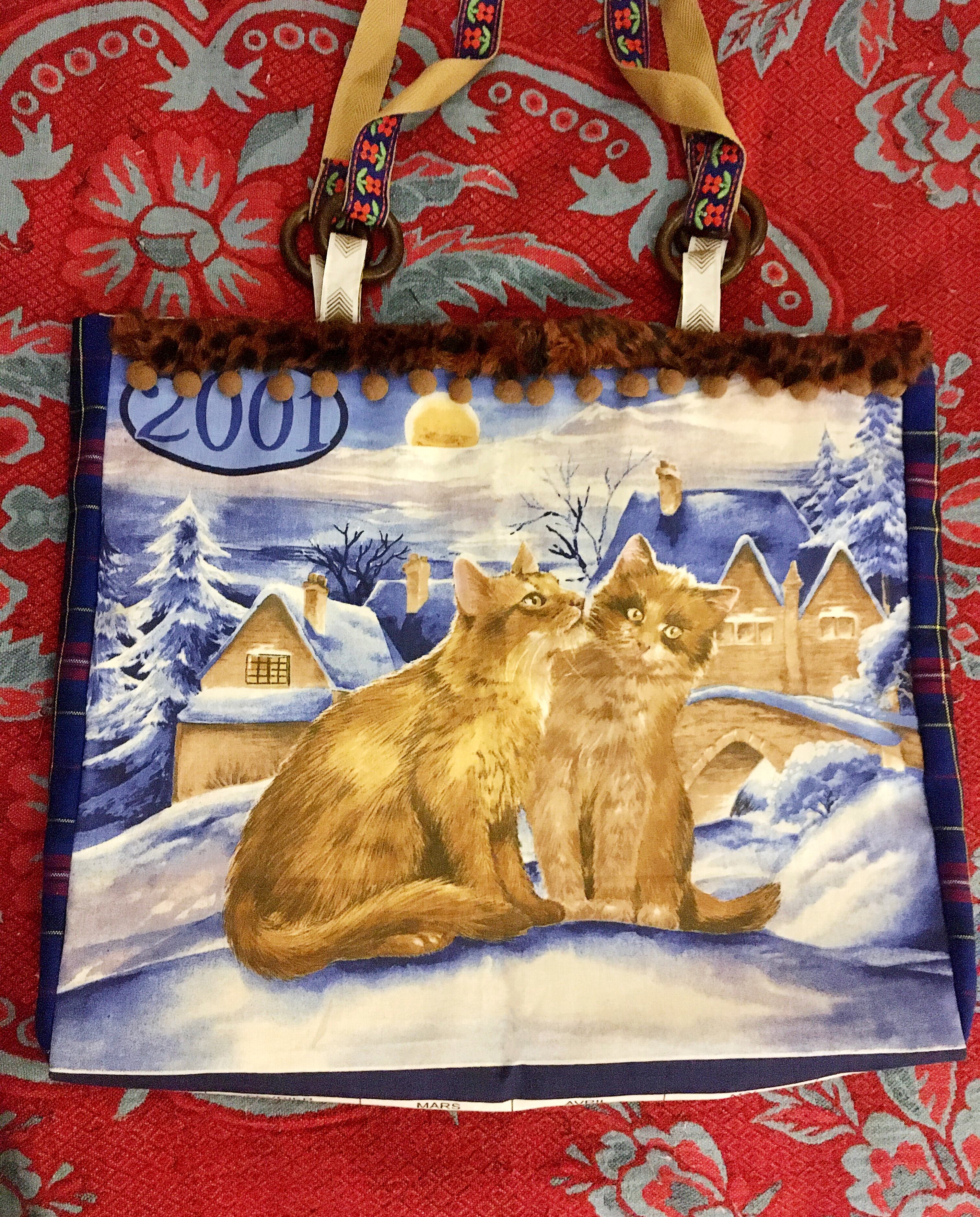 2匹のネコちゃんが仲良く寄り添ってるプリントは、カレンダーのキッチンタオルです。