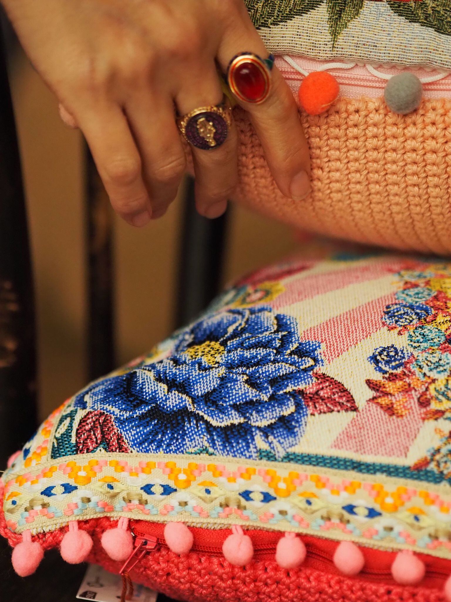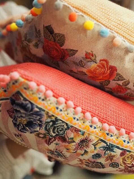 お部屋のインテリアに華やかさを加え、リビングや寝室にぴったりの存在感を放ちます。また、くつろぎのひとときに最適なクッションとしても利用できる、おしゃれで機能性を兼ね備えたアイテムです。